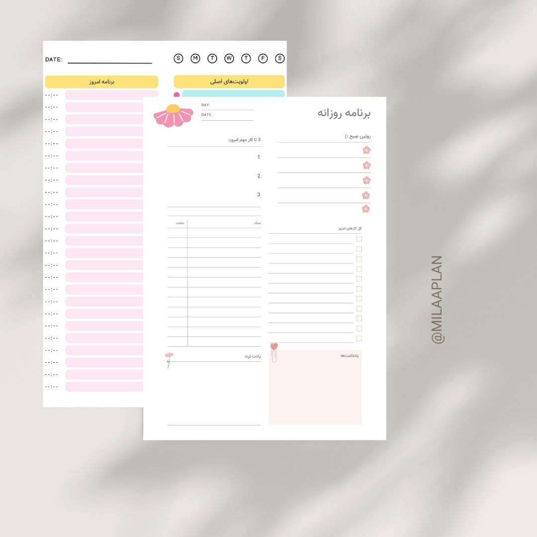 قالب برنامهریزی روزانه با تمرکز بر اولویتها